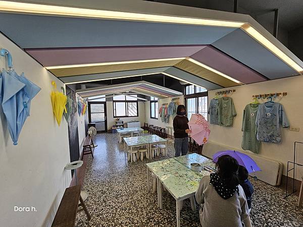 教室很寬敞,一旁的掛鉤還是用廢棄的傘柄製作,色彩活潑明亮,整個很親子的氣息。