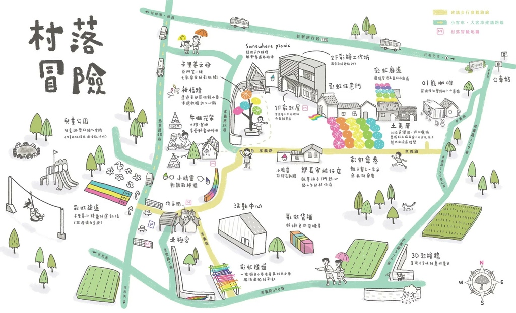 來看看放大版的吧!(取自官網,手機版讀者可切換成「電腦版模式」來放大唷)鎺苭雂F很多小景點,不過最主要的路線是畫面中黃色的孝義路,北極宮停好車後就可以開始走~