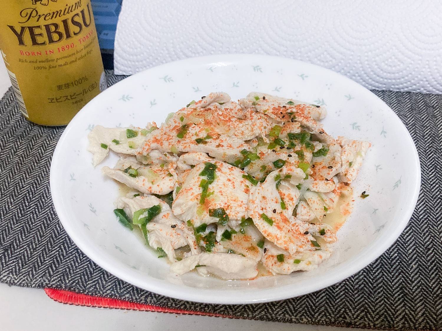 把蔥鹽跟雞肉片拌一起然後冰起來