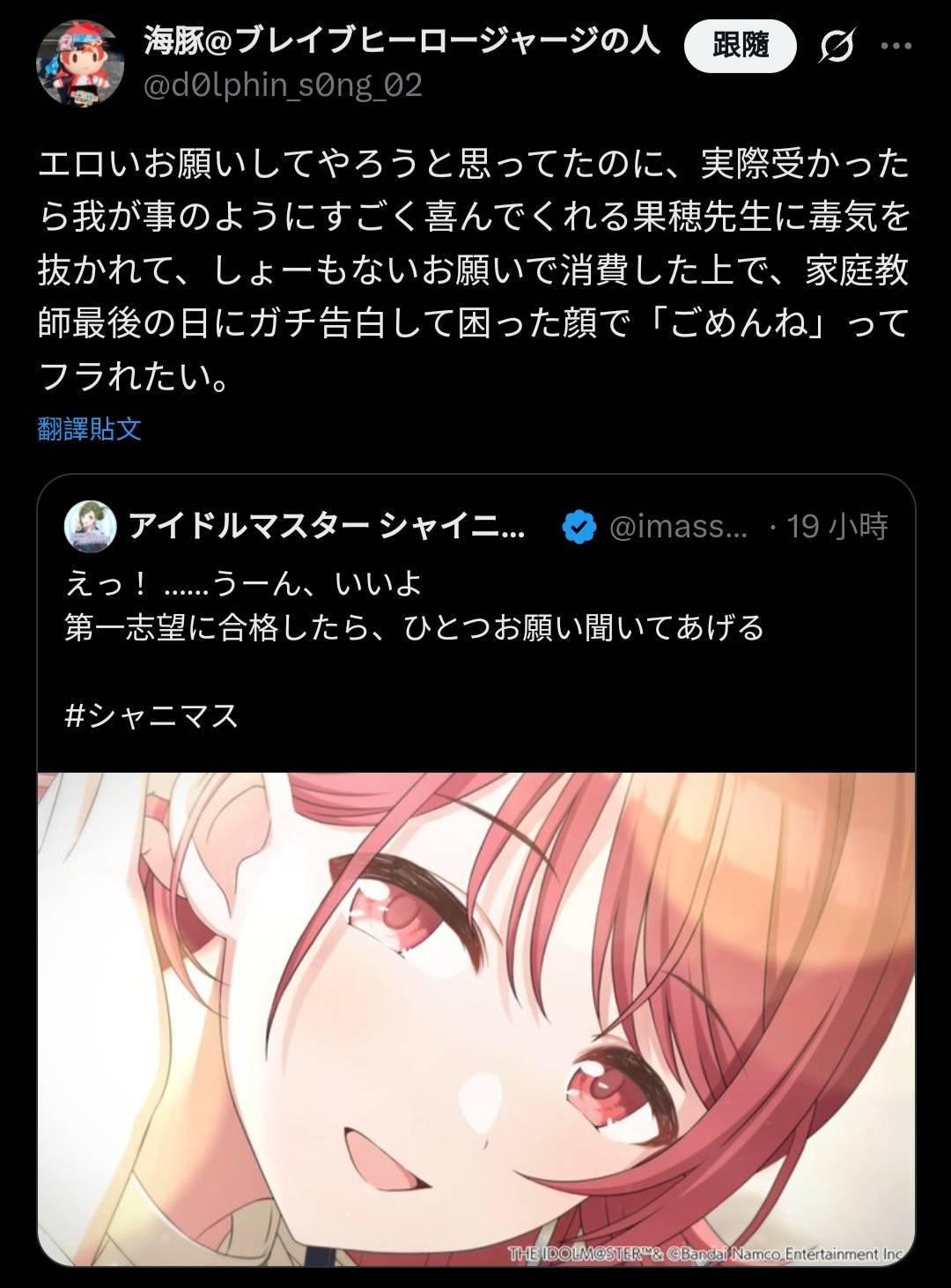 [閒聊] 各位有過家庭教師是大姊姊的經驗嗎?乳題 偶像大師閃耀出的新卡 :嗯,可以唷! 如果你第一志願合格的話,我就聽你一個願望!![[閒聊] 各位有過家庭教師是大姊姊的經驗嗎? [閒聊] 各位有過家庭教師是大姊姊的經驗嗎?](https://i.imgur.com/mfFFcrpb.png)