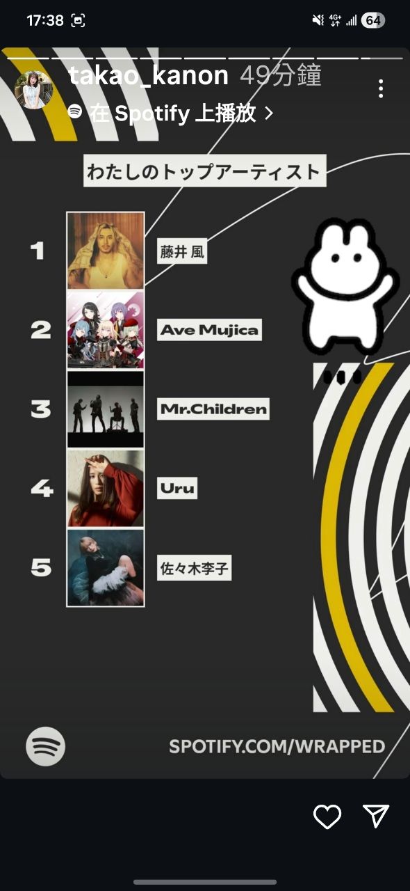 [閒聊] 高尾奏音IG限時 Spotify回顧