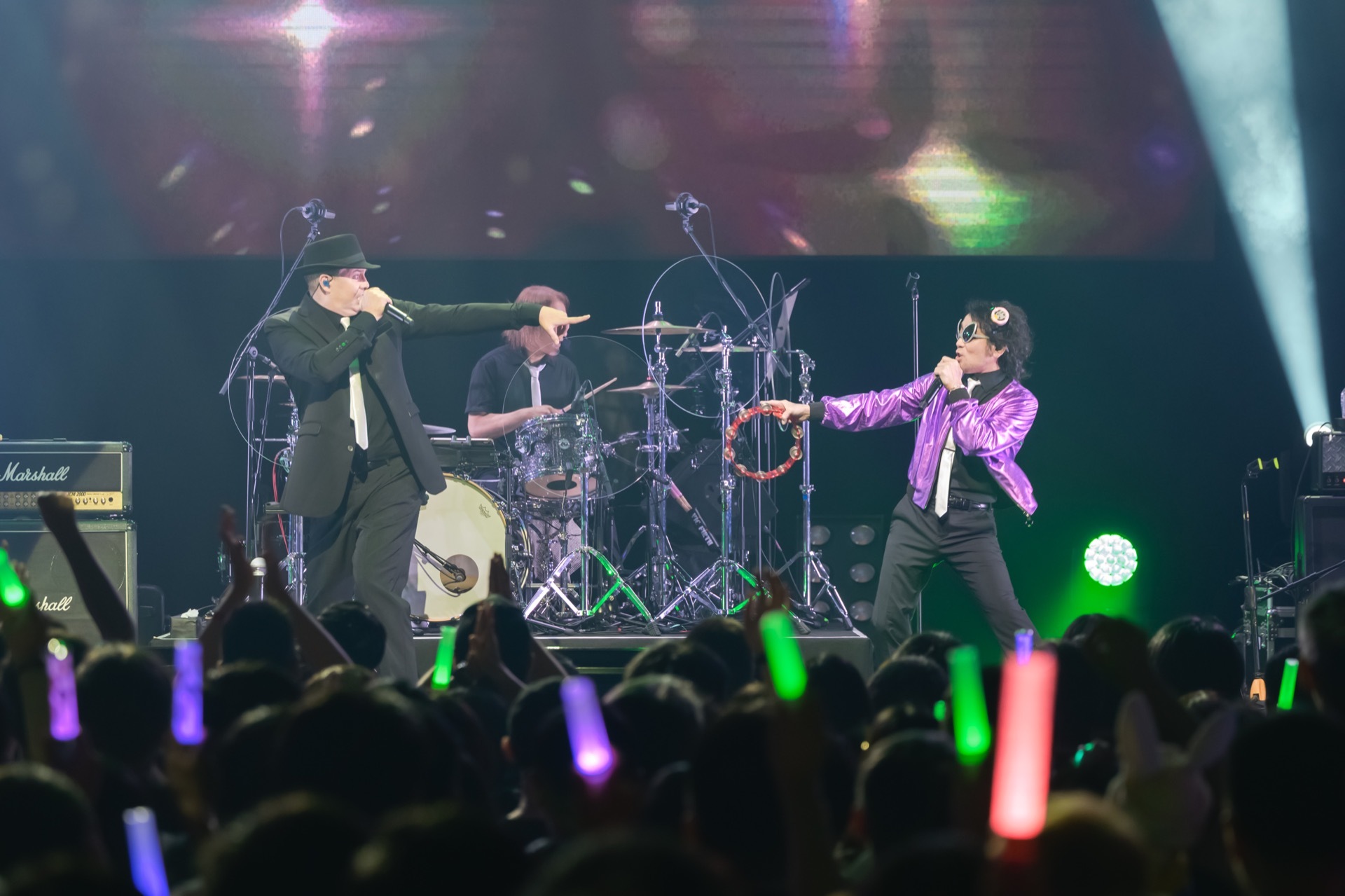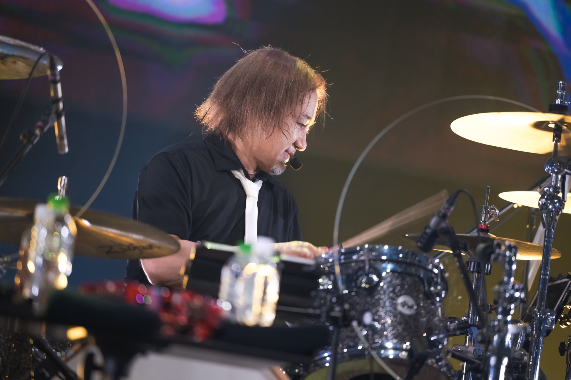 「台北!一起嗨吧!」隨著振聲大喊,Koji 與祖堅正慶熱血接力,以〈A Long Fall〉、〈Metal - Brute Justice Mode〉與〈eScape〉等經典副本戰鬥曲連發,Zepp 現場如臨最終戰役,歌迷高舉雙手與螢光棒隨節奏吶喊,展現與 THE PRIMALS 並肩作戰的熱情!壓軸以重量級曲目〈Under the Weight〉收尾,祖堅正慶與團員合力轟出震撼低頻,全場地動山搖般沸騰,舞台燈光與樂音交織出一場極致聲光饗宴。