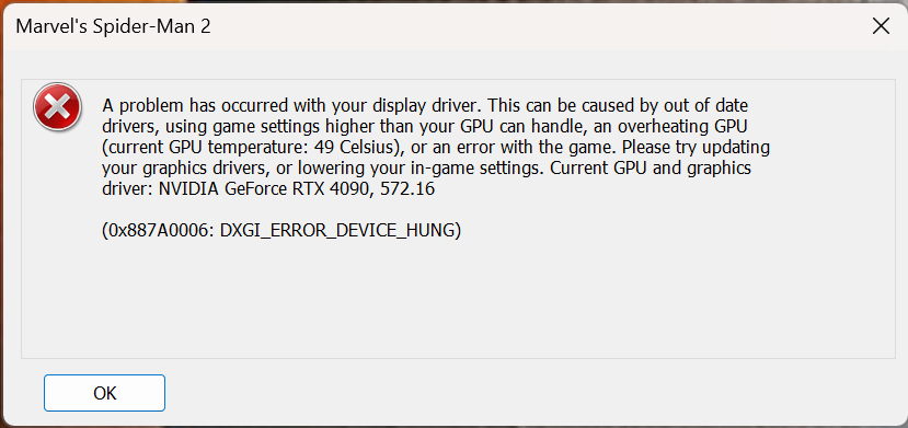 只看這個錯誤訊息,上面寫顯示驅動支援不上遊戲設定,但是
