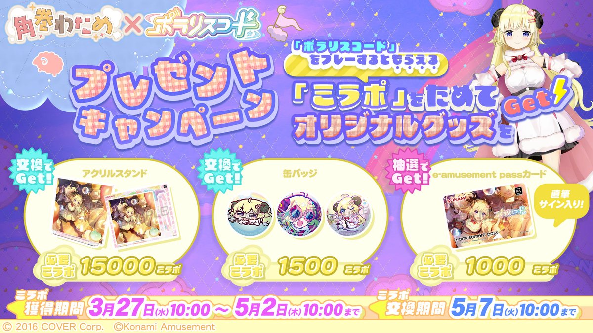 角卷綿芽跟Konami的電玩機台PolarisChord進行期間限定合作!