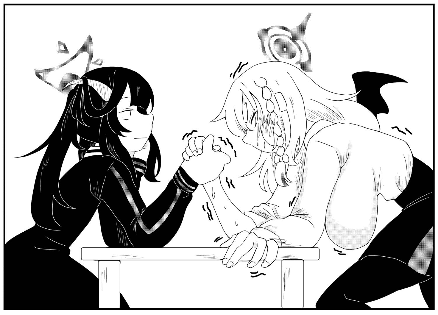 繪師自我解釋:平常都在處理給食部的工作,應該比羽留奈有力氣