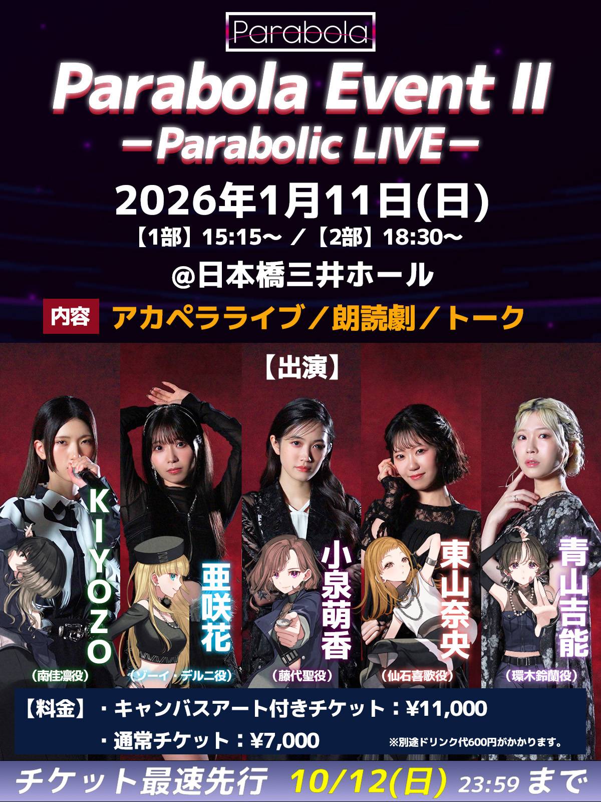 [情報] 歌聲是法式千層酥 Parabola聲優另一團Parabola聲優: 藤代聖:小泉萌香 ゾーイ・デルニ:亜咲花 仙石喜歌:東山奈央 環木鈴蘭:青山吉能![[情報] 歌聲是法式千層酥 Parabola聲優 [情報] 歌聲是法式千層酥 Parabola聲優](https://i.imgur.com/GsZ66K9b.jpeg)