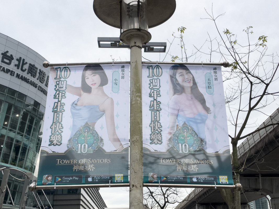 今年重磅回歸的《神魔之塔》不僅為全場最大攤,就連週遭路燈也掛上了紀念 10 週年的神魔女將路燈期,有興趣的可以找找自己心儀的女將在哪裡。