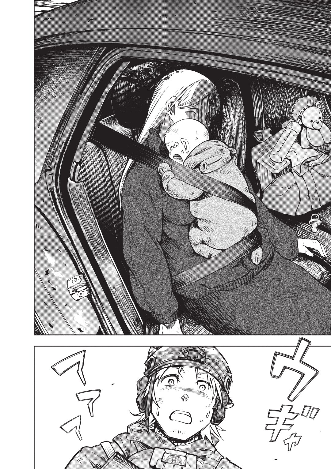 是拿刀把衣物一起割下來 安全帶先別動 避免嬰兒亂動導