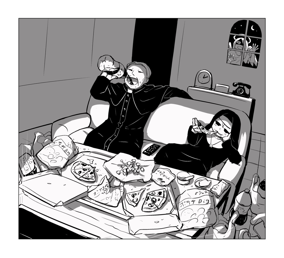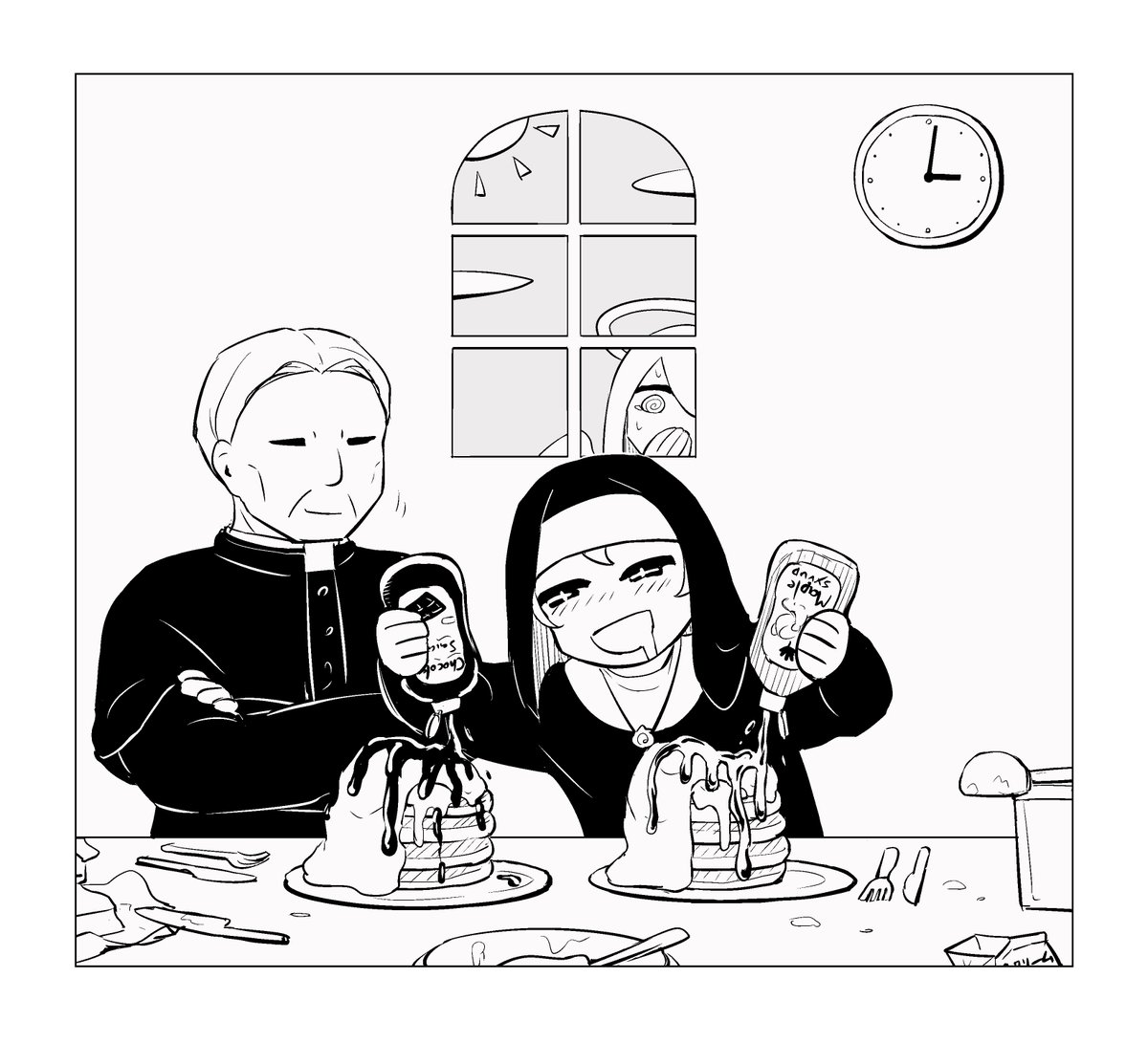 X(前推特)超過246萬追蹤的人氣繪師アボガド6,最近有一個神父與修女系列作,目前我往回放看是從這篇開始的
