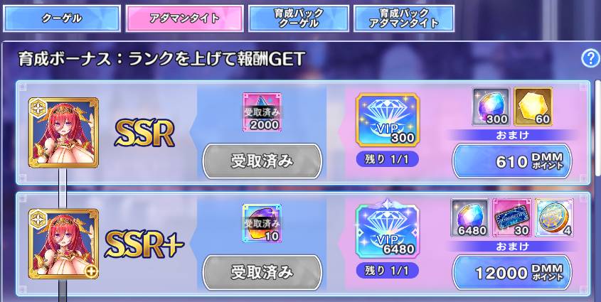 對了 現在上SSR+的獎勵變成這樣