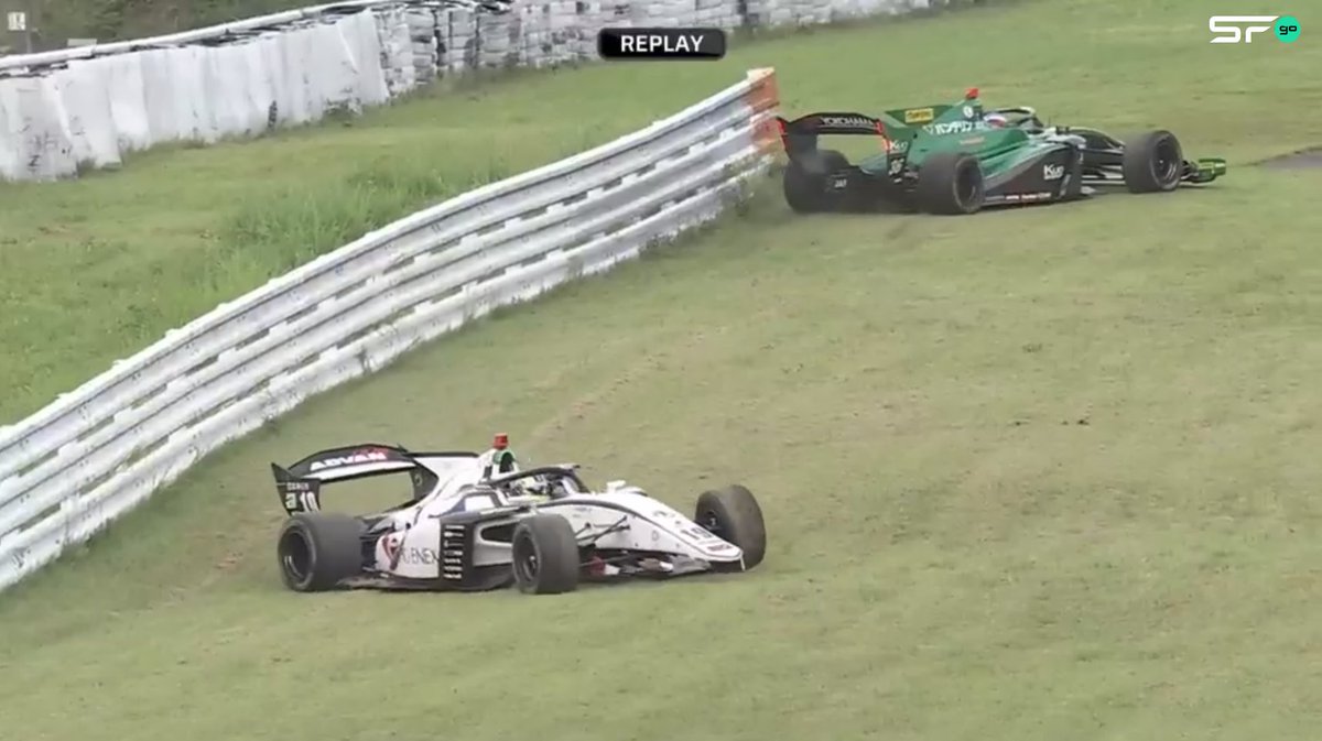 小Alesi 過彎失控後帶著 関口 一起出賽道