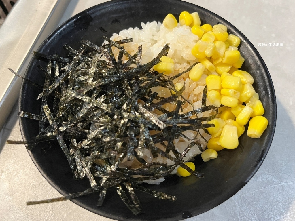 升級品項是玉米海苔飯跟青蔥月見飯,