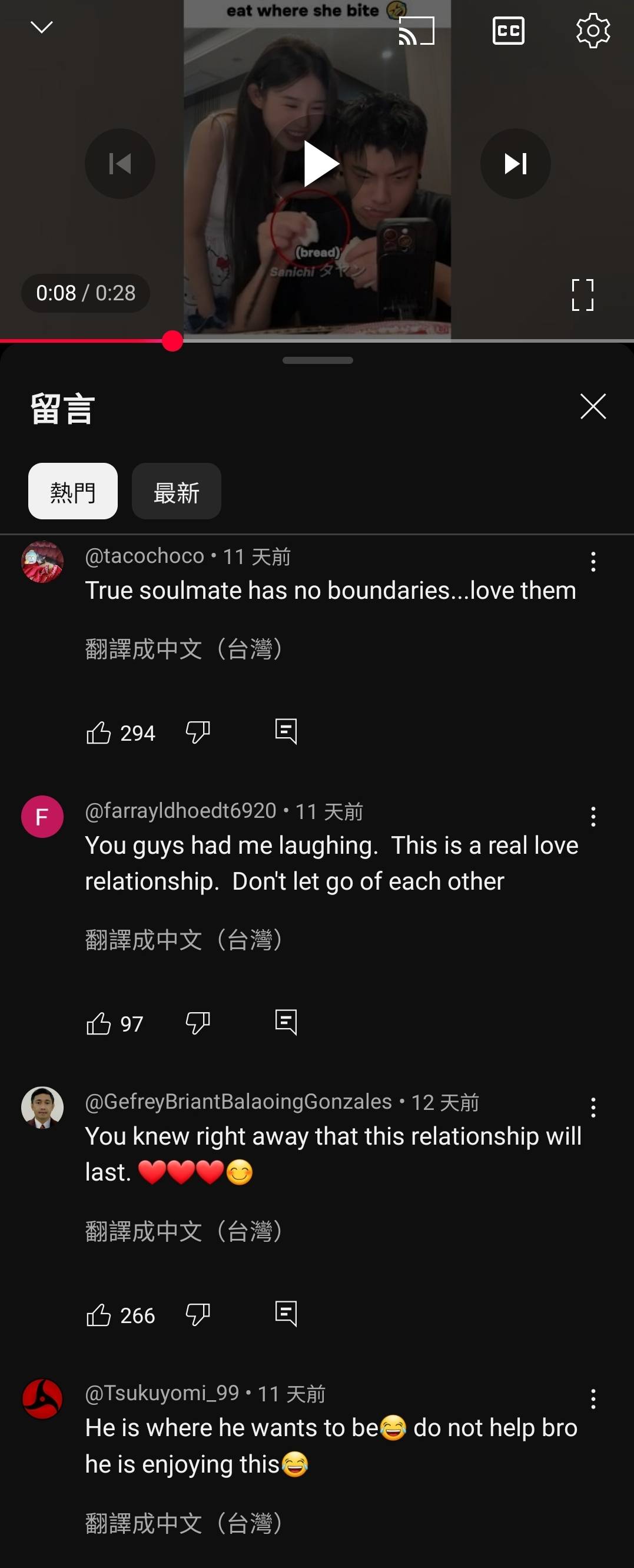 : 男友沒說什麼,接過後把女友咬過的地方剝掉