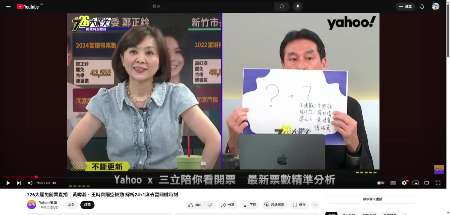 下午四點還預測罷免結果是七席