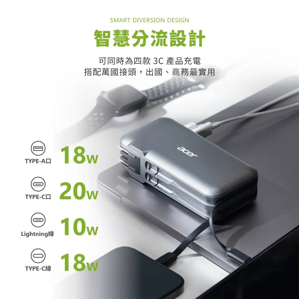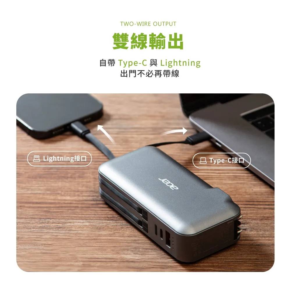 ACER 宏碁POT-465 10000mAh 自帶雙線AC插頭行動電源