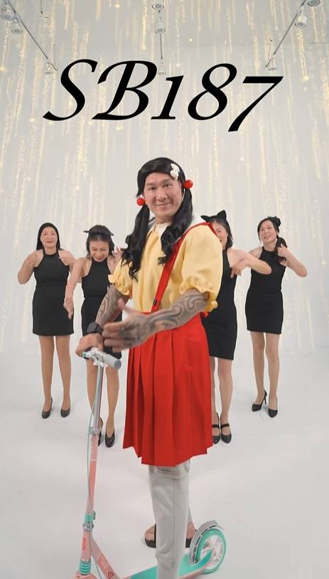 就一堆人站雁行陣,接著會有一個騎滑板車