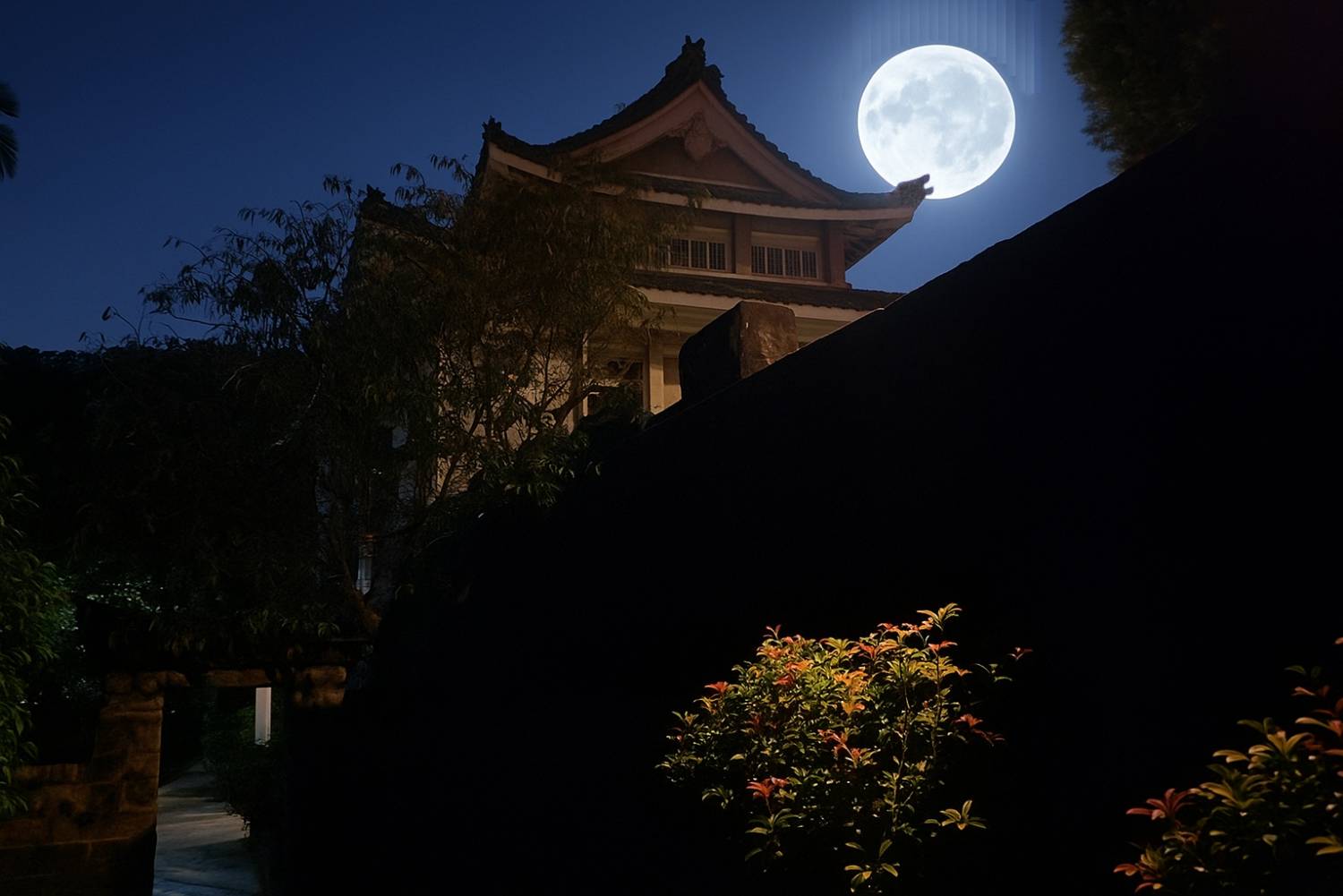 在新北中和區圓通寺可以拍到這樣的月亮