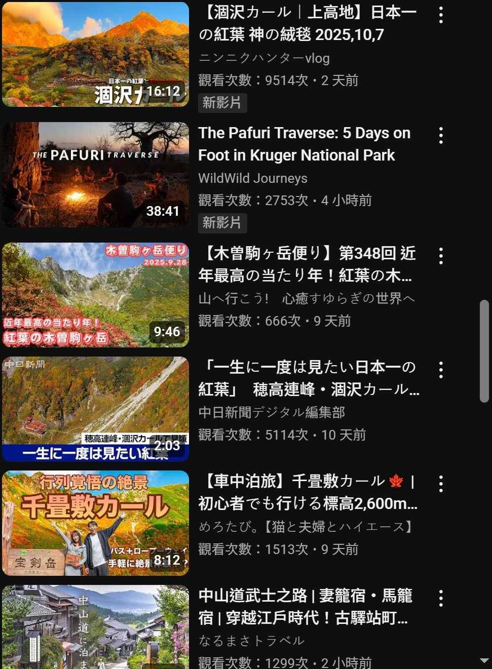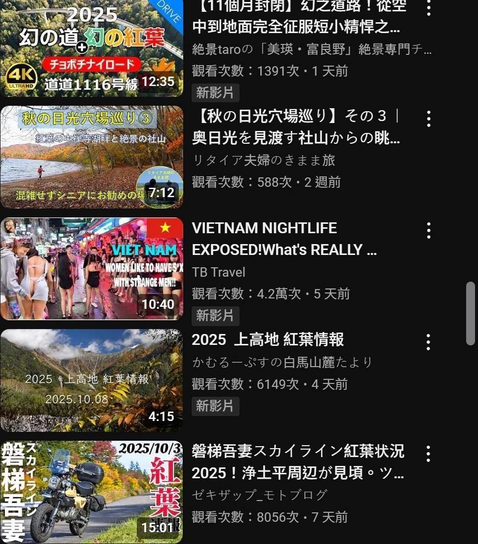 就在10月初開始 陸續出現一堆日本ytr拍楓紅的...