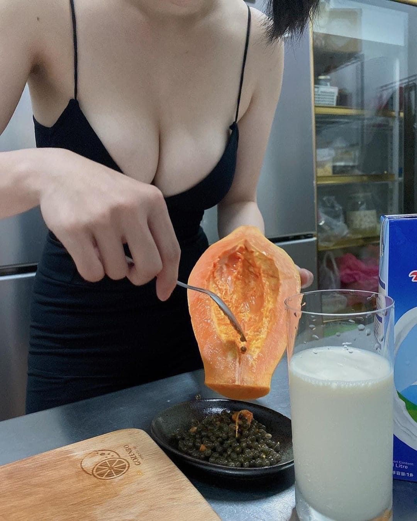 [問卦] 女同事請喝木瓜牛奶女同事請喝木瓜牛奶 說是中午在公司用的 印象中 冰箱裡有木瓜 餐具盒裡有杯子3