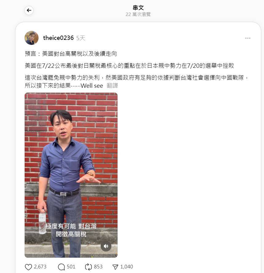 大成功 關稅沒低於10%賴皇就下台