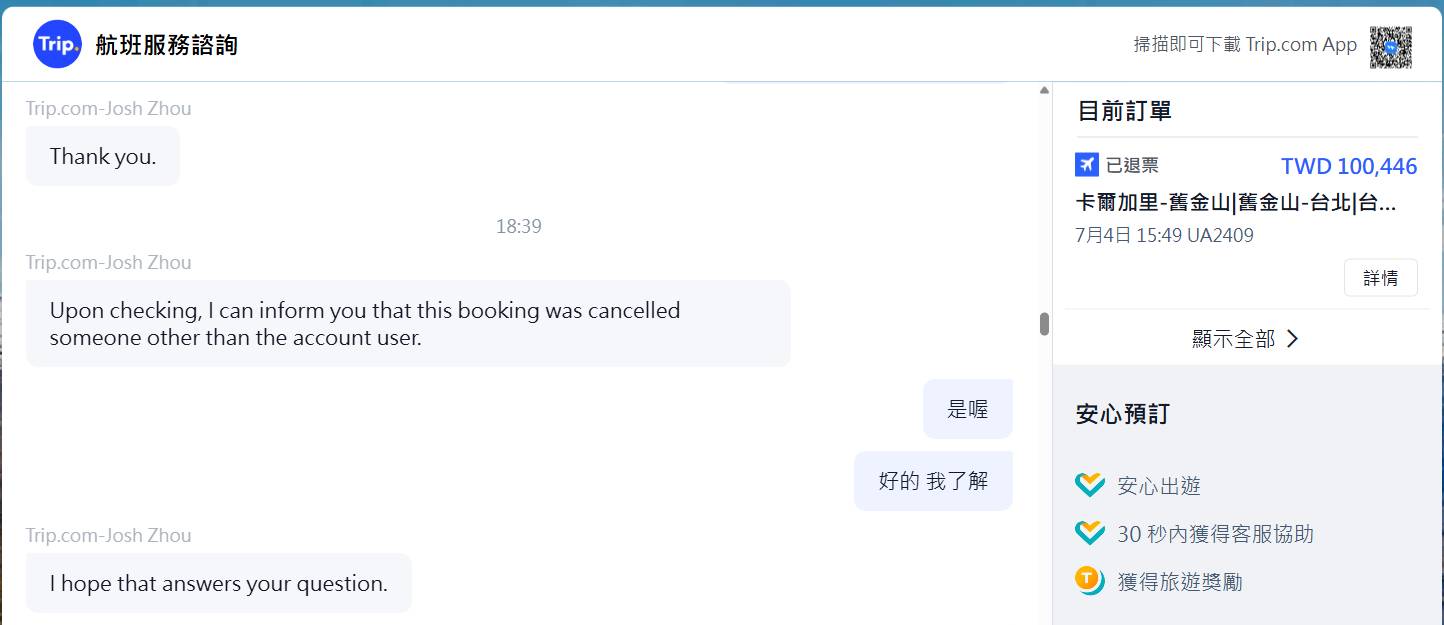 也有請客服查一下內部確實不是原本帳號取消訂單的