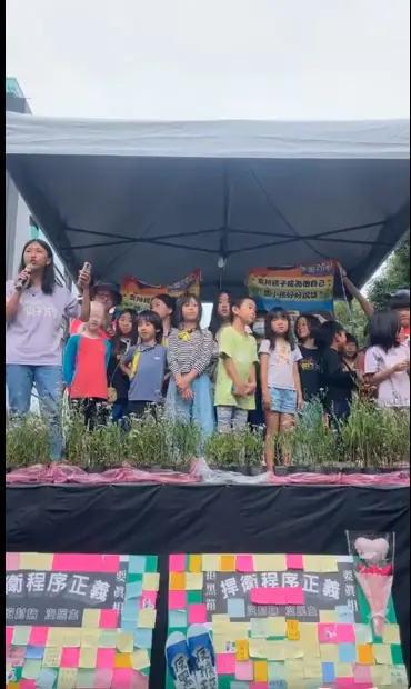 : ,聲稱用繪本帶孩子了解立法院發生什麼事,甚至邀請一群年幼的孩童上台高喊口號「沒有