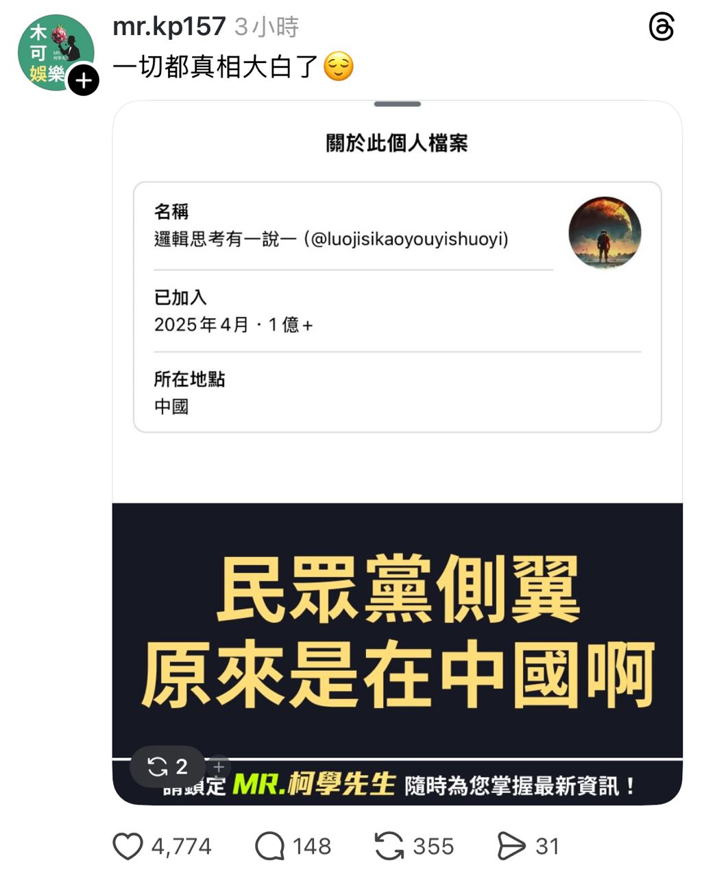 [問卦] 脆:一堆人看到我地點顯示在中國就高潮了