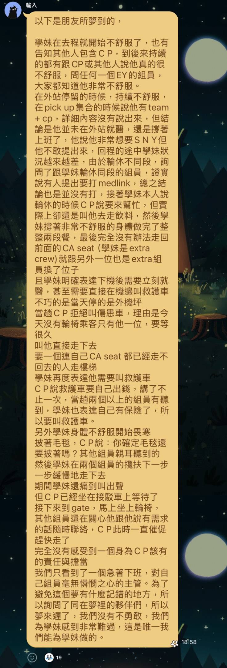 希望這次的悲劇,能讓公司真正聽見組員的聲音。別再讓更多人,用健康甚至生命,去證明制度有問題。