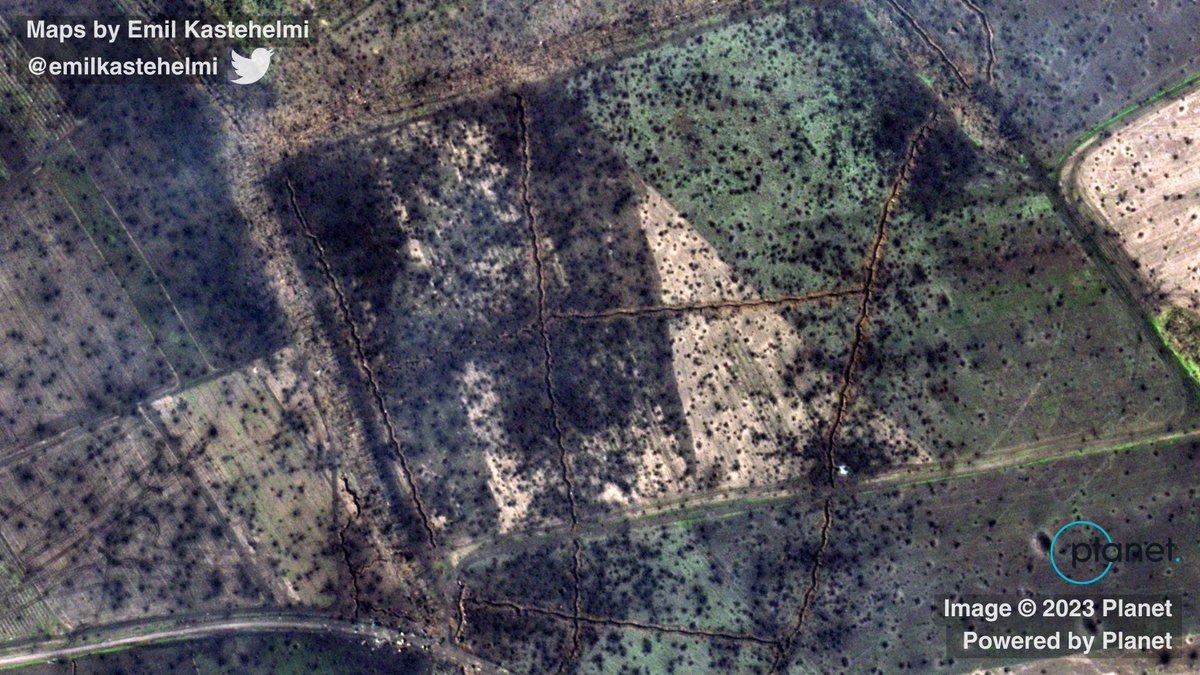 就是壕溝,然後黑黑的就彈痕,俄軍之