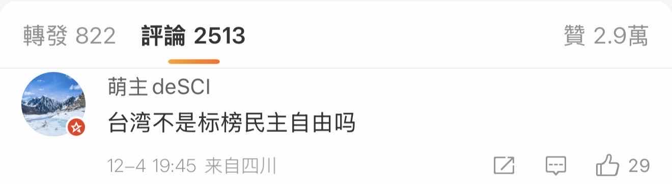 胸的只有民主自由 被對岸嘲笑說好