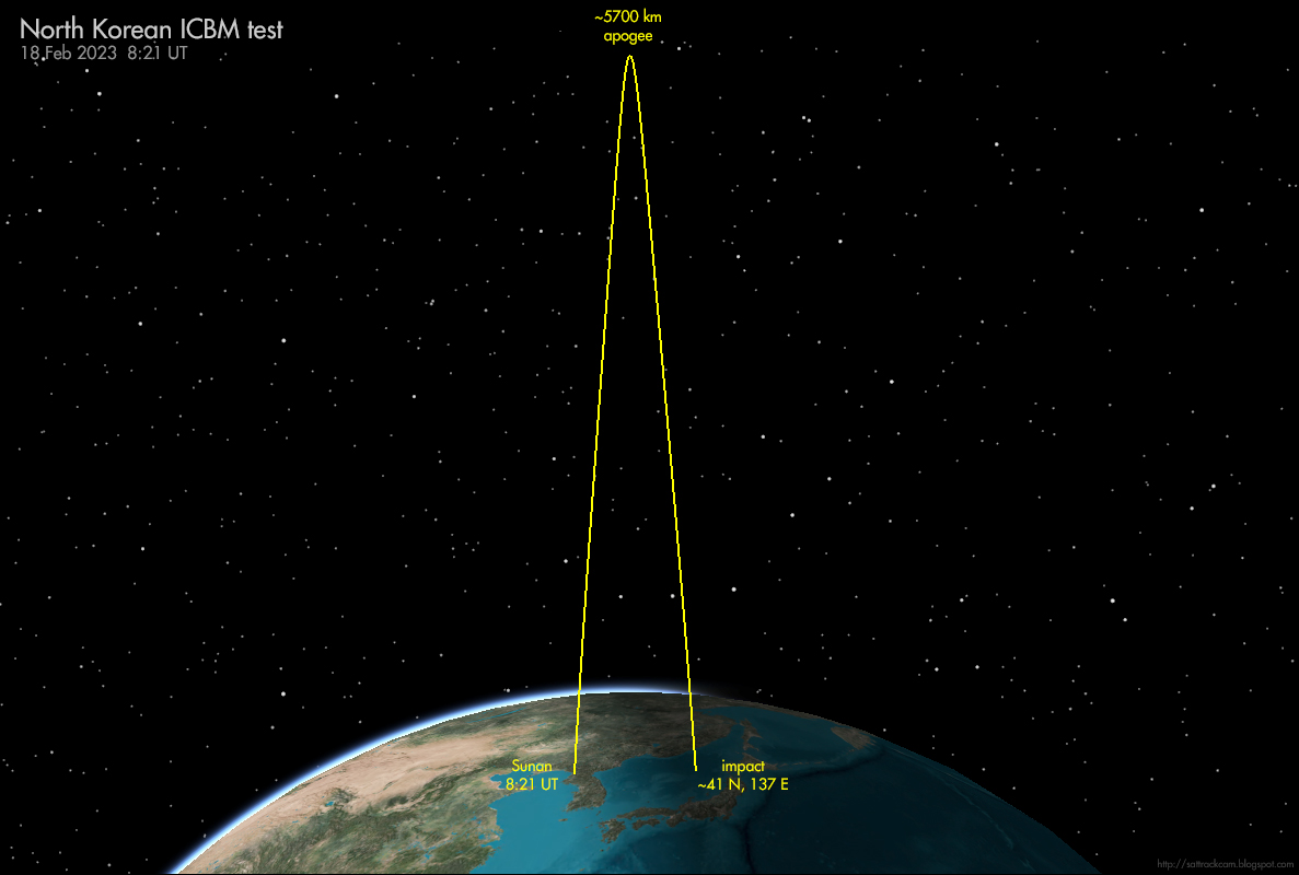 。高度傾斜的軌跡。(根據日本國防部信息重建)。