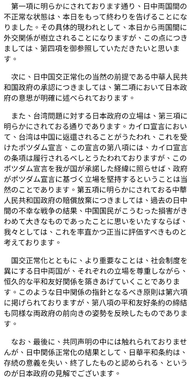 Re: [問卦] 欸幹 我們還是日本領土喔你真的覺得中國這樣是在玩火? 都是白癡? 抱歉 這是中共一貫的立場 起碼從 1972年開始 我們來看 中日建交宣言 (中共對日本)