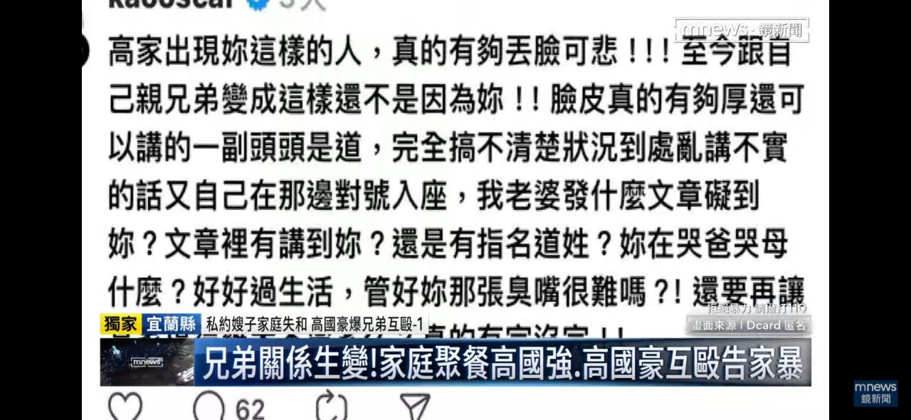 [閒聊] 高國豪大嫂發文反擊 哥哥高國強也轉發了 現在是要上演兄弟鬩牆了嗎 P+場外話題真的是滿滿乾貨 -----6