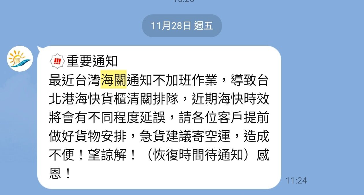 [問題] 為何集運商會延遲送貨?最近有1單拼多多的官方集運 由天馬集運負責運輸 從出倉裝車完成 至貨到台灣海關 足足等了11天5