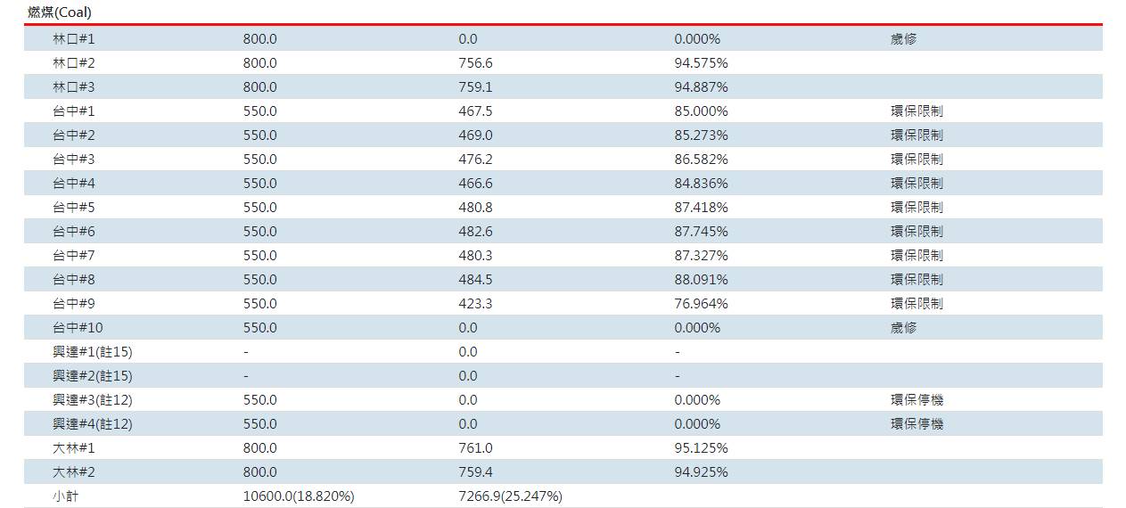 真的 現在完全是靠火力在橕 看這精美的碳排放量