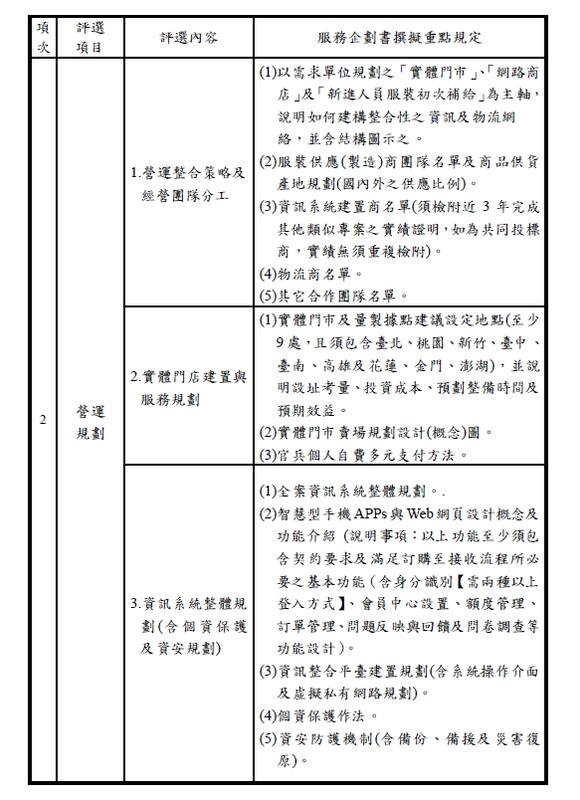 國軍服裝供售站 不就只是衣服門市 這標案有規定需要自己製作衣服嗎?