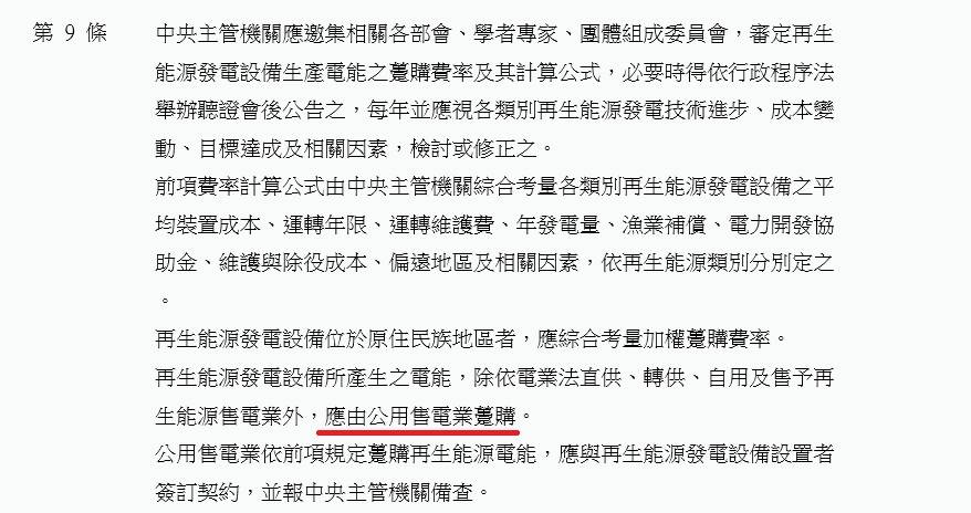 任憑你再怎麼凹 再怎麼洗 都是沒用的 因為2009年制定的再生能源發展條例 其條文就硬生生地放在那裏 絕對不是任何人可以