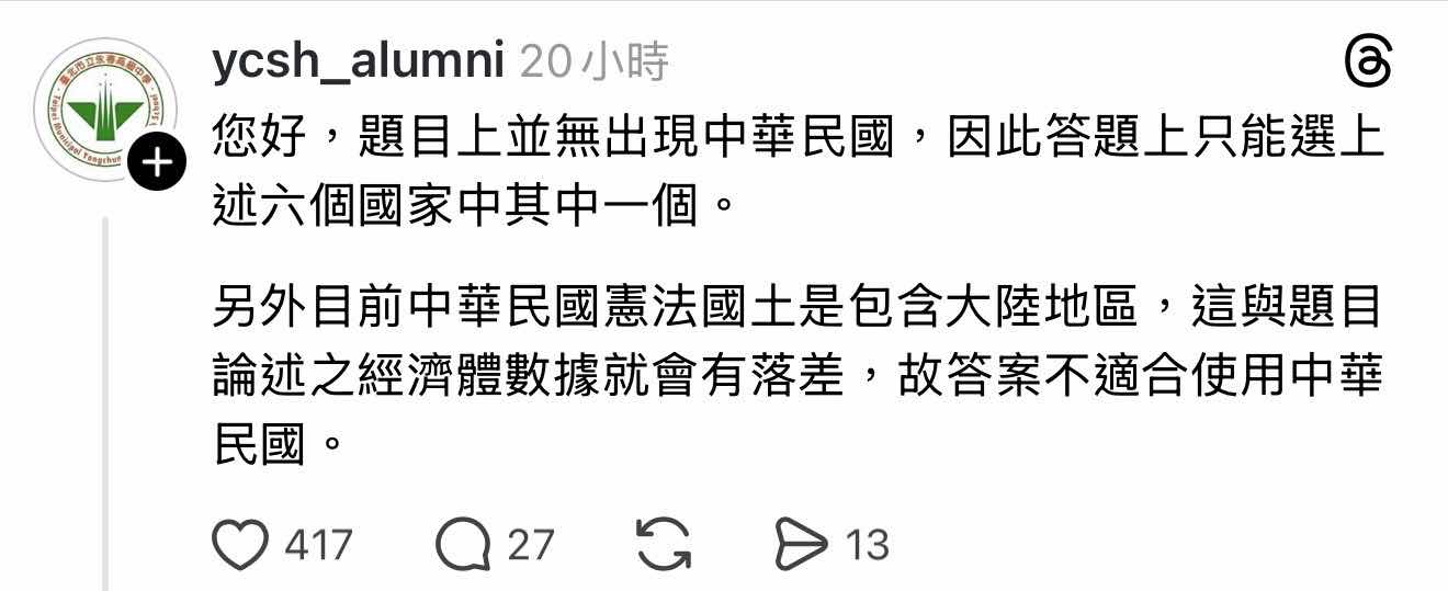 這題應送分 根本沒台灣國