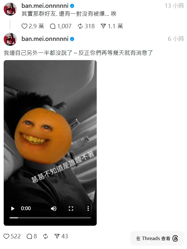 : 這則短短的貼文在5小時內就吸引104萬次瀏覽、1.3萬個讚和近700則留言,討論度爆棚。: 許多網友留言表示,「要爆就直接爆,不然就是蹭而已」、「吃瓜」、「大家不要忘了『: 我知道誰懷孕事件喔』」,也有人猜測是否還有其他藝人牽涉其中,甚至懷疑事件背後還: 有更多隱情。