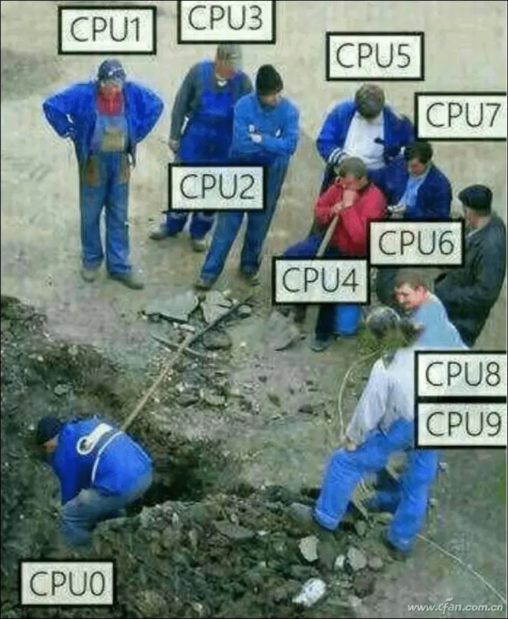 「一核忙碌,多核圍觀」這句話是在調侃現代多核心處理器常見的一種現象: