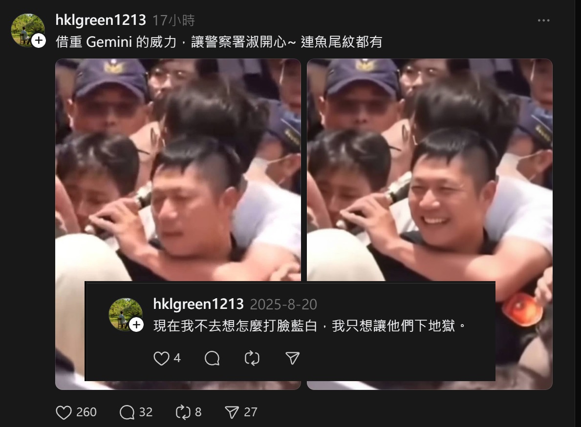我並沒有說黃國昌鎖喉員警 文章有寫得很清楚 就是推擠跟拿麥克風動作 警員也說不覺得有被攻擊的惡意 但修改圖是另外一回事 要注意青鳥反串 拿修改的圖片等人上勾 再踢爆攻擊 會受傷的更大 要降低傷害就是承認錯誤