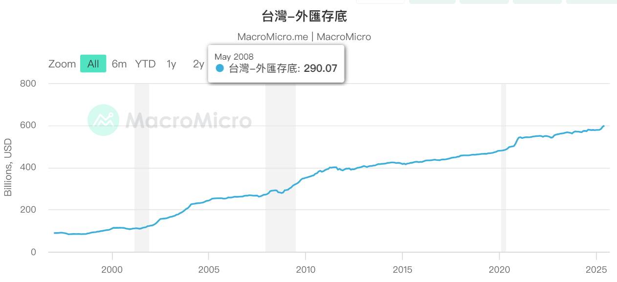 台灣累積的外匯存底有5984.32億美元,足以應付投資美國的4000億要求。