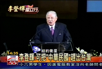 李登輝前總統今天在紐約,進行他訪美的第一場正式演講,場內幾乎被獨派僑胞擠爆,李前總統語出驚人的說,台灣人把地方借給「中華民國」,同樣也可以把「中華民國」趕出台灣!
