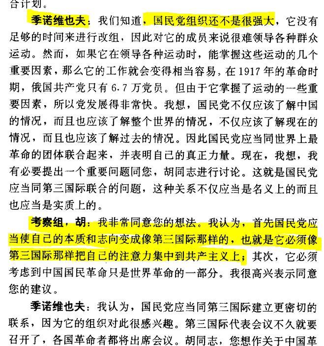 國民黨應該更"第三國際"化,更專注在"共產主義"上