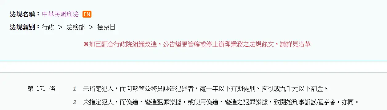 171就是叫未指定犯人誣告