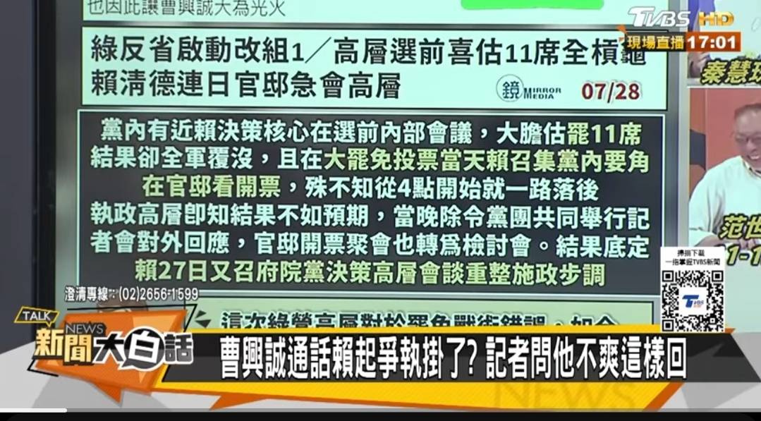 新聞說賴清德召集親信高層在16:00齊聚官邸一起看開票,開票前同樂會喜估可罷11席