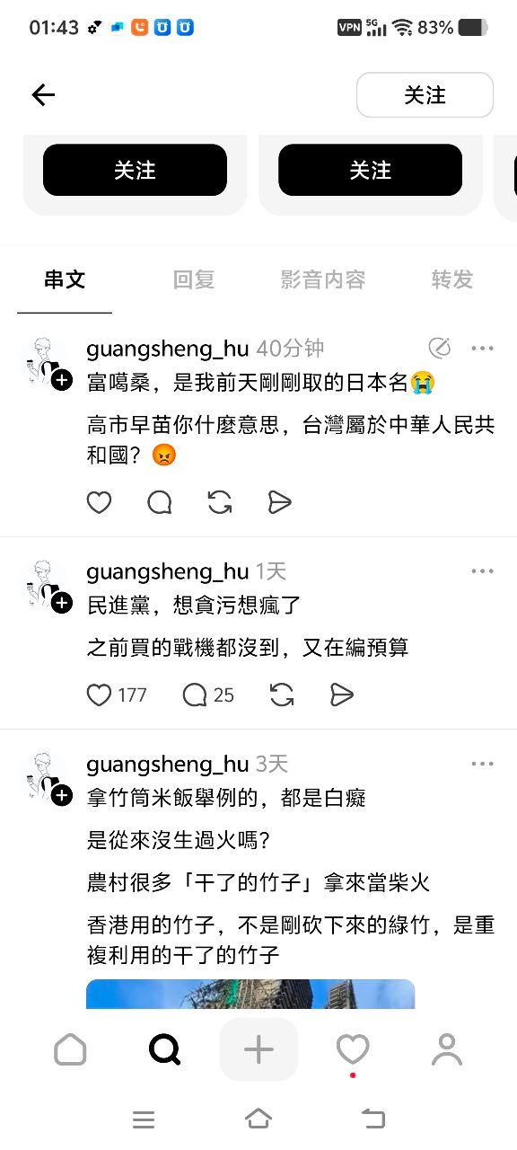 [討論] 中國網民在Threads假扮台灣人被抓包