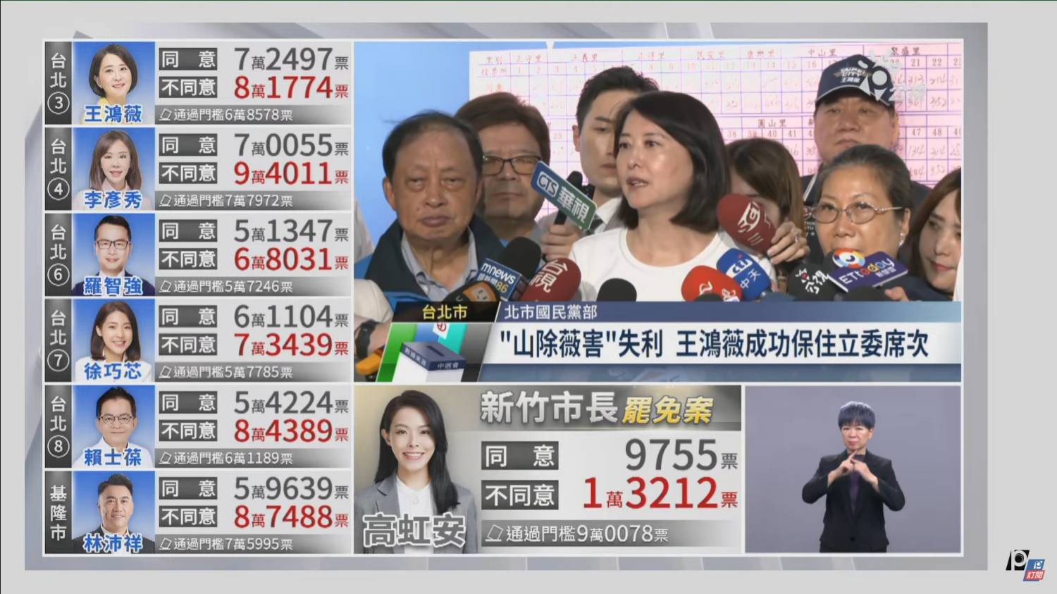 [討論] 公視開票 王鴻薇.傅崐萁成功保立委席次
