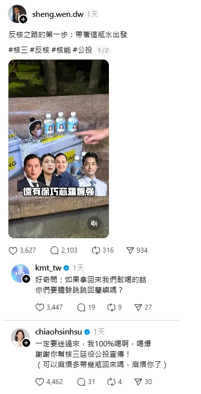[討論] 徐巧芯也把核廢料水喝下去了….徐巧芯真的把民進黨送來放置在蘭嶼核廢料儲存場的水喝下去了 民進黨怎麼會淪落到這樣 連徐巧芯都能殺包你們這些反核仔… 太可憐了 你們到底是在催票 催核三同意票嗎??13