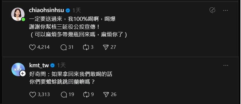 Re: [新聞] 陳聖文喊帶「這種水」給藍白喝!藍營嗆:他是去推廣核廢料很安全的吧 穿著短衣短褲沒有特別防護 也沒看到有帶輻射儀,就跑進去了 然後說要礦泉水參觀一圈再給藍委喝 九百芯就在下面留言叫他快點拿回來5